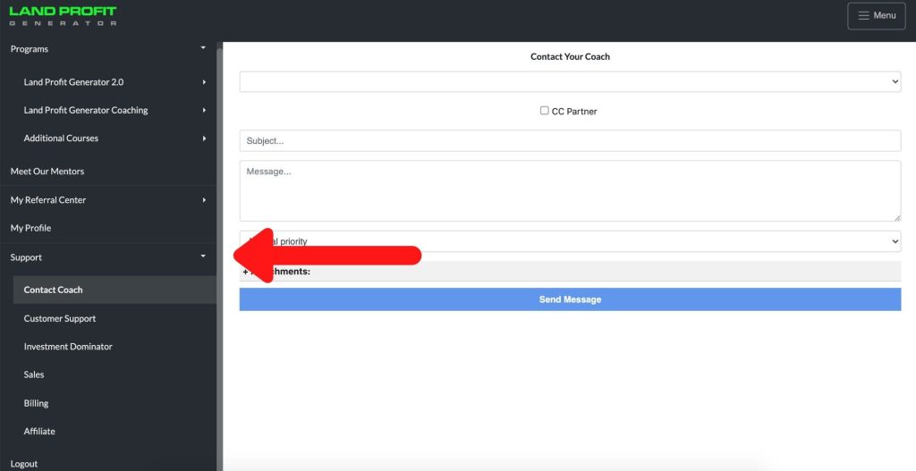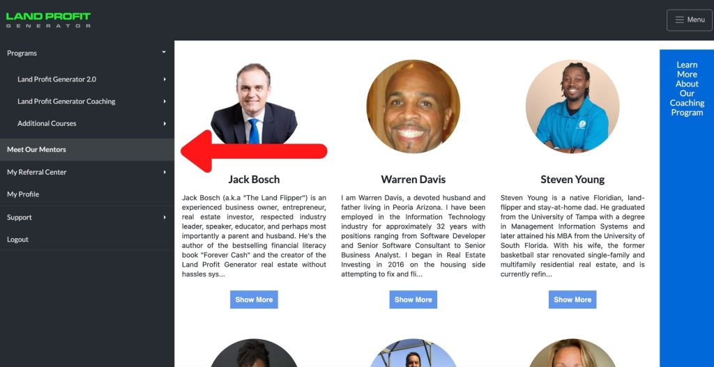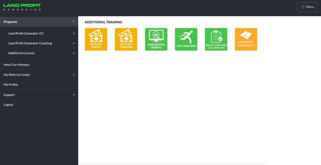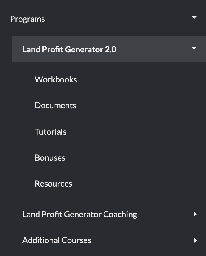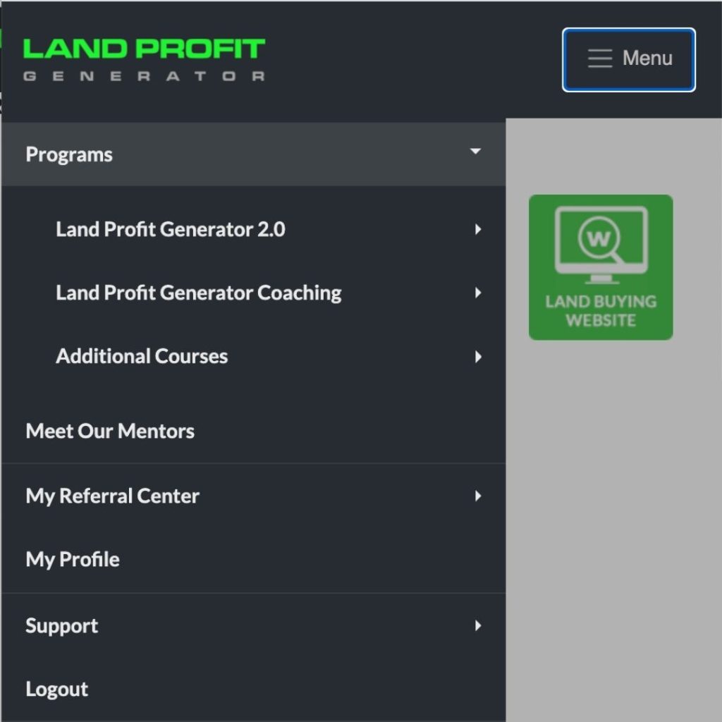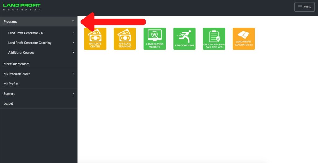 Click the menu option on the left side of your screen labeled “Programs” to access your Land Profit Generator Programs.