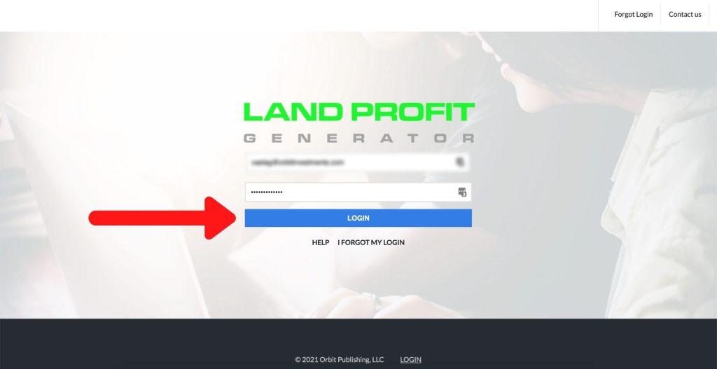 Step 1: Visit my.landprofitgenerator.com and input your login information. Click the blue login button to log into your account.